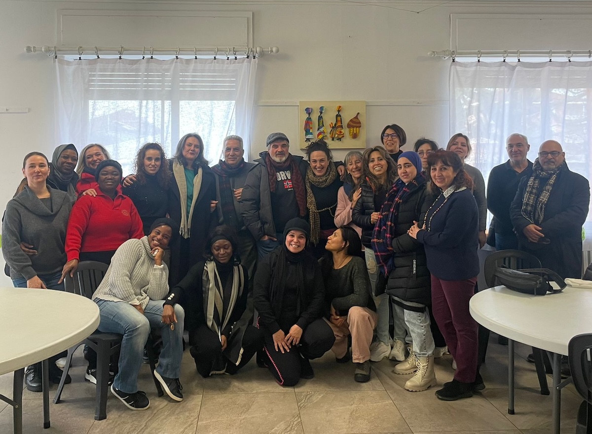 I partecipanti e le partecipanti all’inaugurazione del nuovo Sportello Migranti CGIL all’interno di Casa Frisco di Carmagnola (foto: Associazione Karmadonne)