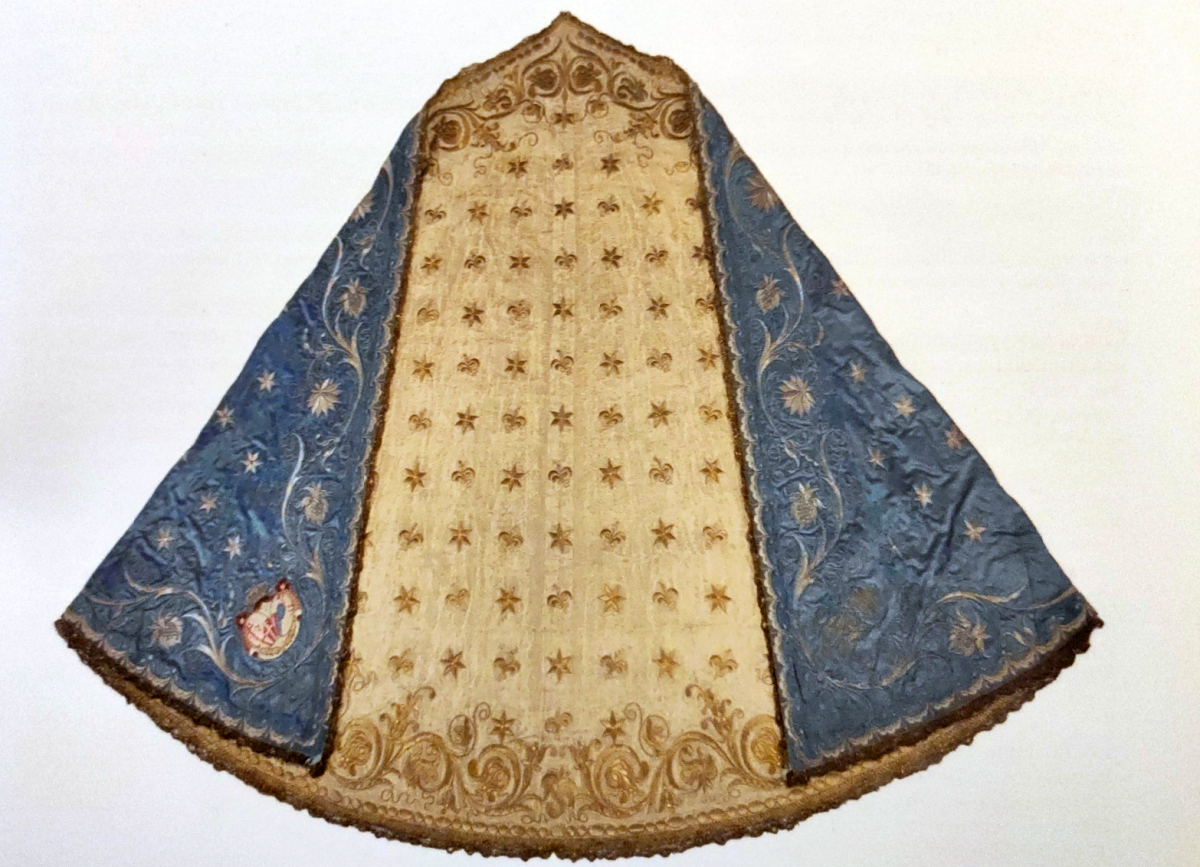 Il secondo entra nel cuore dell’oggetto di studio, ricostruendo la storia dei manti -uno del Settecento e uno del 1846. Il terzo, infine, dà spazio al racconto del manto attraverso vicende concrete: il ritrovamento, il restauro ad opera delle monache dell’abbazia “Mater Ecclesiae” e la restituzione alla Città.